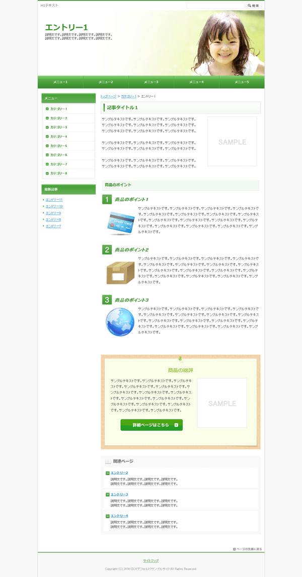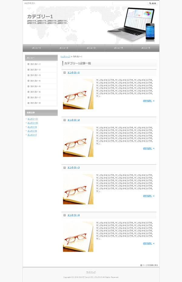 サンプルサイト内で利用されている画像、イラストは全てSCK内で提供しているもの