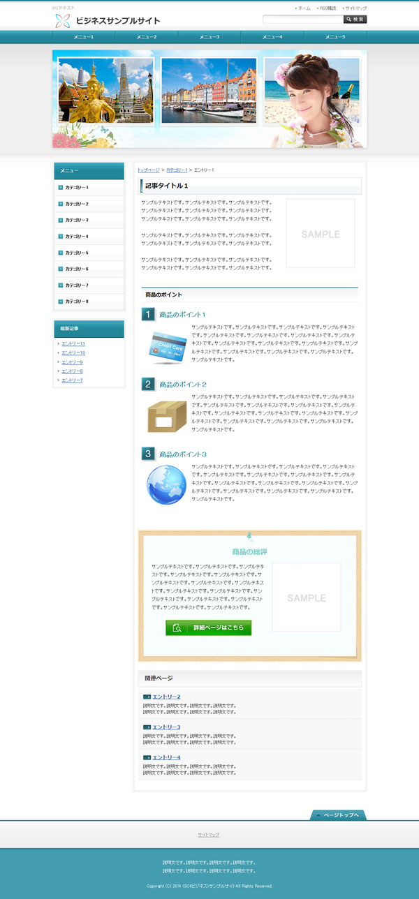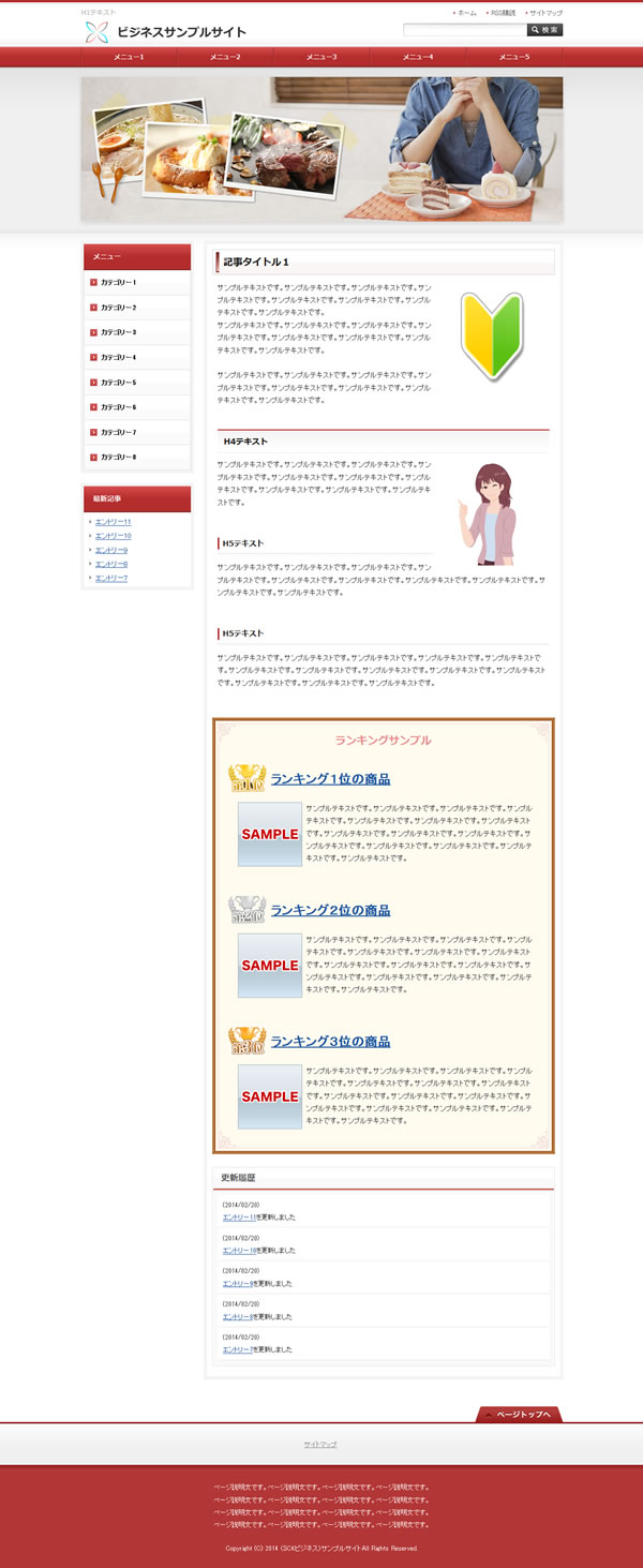 サンプルサイト内で利用されている画像、イラストは全てSCK内で提供しているもの
