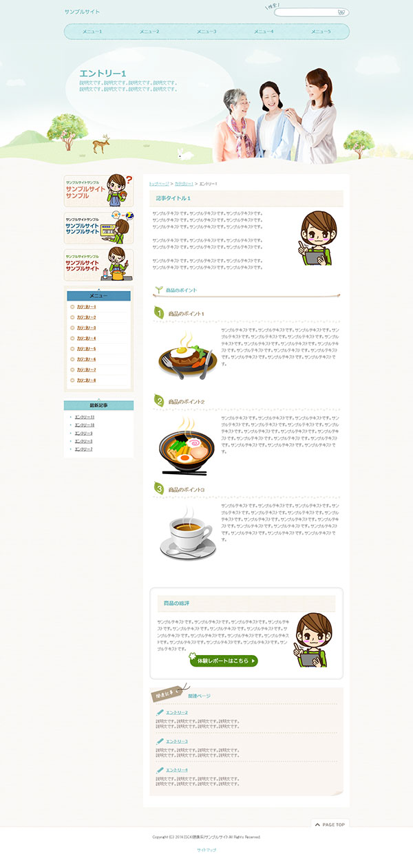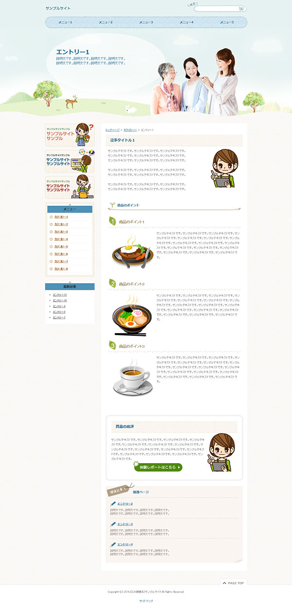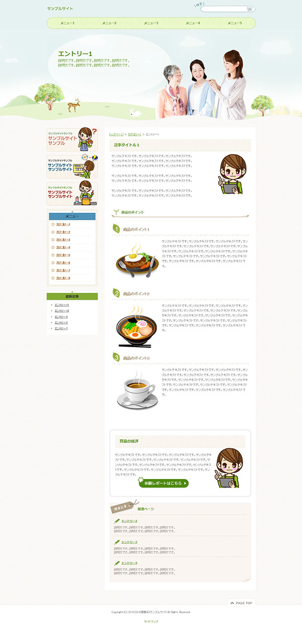 サンプルサイト内で利用されている画像、イラストは全てSCK内で提供しているもの
